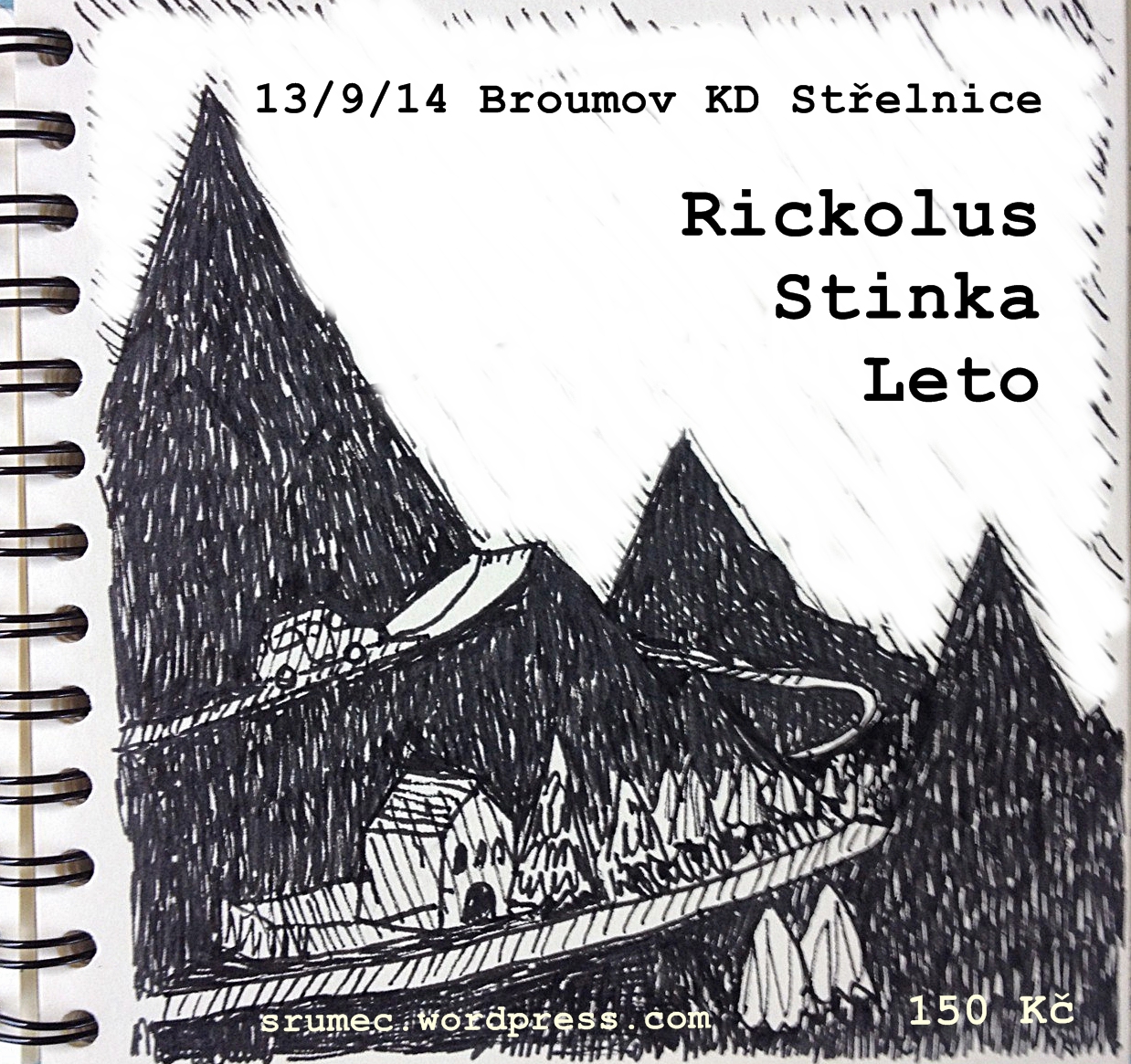 Neuběhnul ani rok a do Broumova se vrací Rickolus. Může se zdát, že návrat po tak krátkým čase je zbytečnej – ale po tom, jak se koncert vyvedl, jsme neváhali ani chvilku a když se vyskytla možnost Richarda znovu booknout, skočili jsme po něm. Protože se vyvedla kombinace se Stinkou, pozvali jsme taky ji. Na trojku doplní vystupující Leto. Sobota 13. září 2014, Broumov, KD Střelnice od 20 hodin za 150 korun.