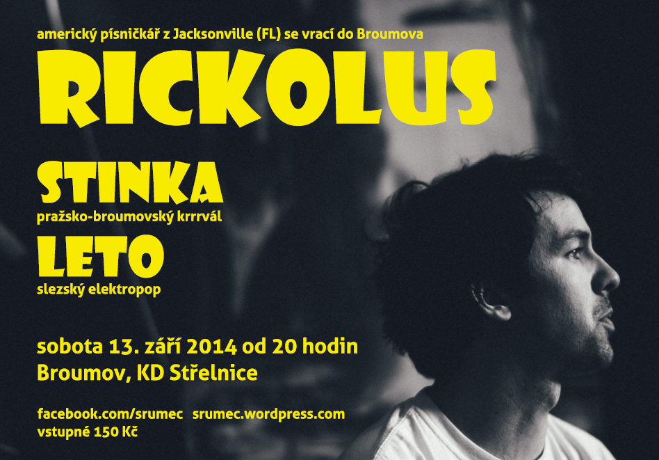 Sobotní koncert Rickoluse, Leta a Stinky je takříkajíc za dveřma. Máme přichystaný dva sudy Opata (chmelený Bitter, je to lahůdka!) i ping-pong na noclehárně, všechno by teda mělo klapnout bez nejmenšího problému. Brány Střelnice se otevřou před osmou večerní a krátce potom koncert začne. Samozřejmě můžeme doporučit včasnější příchod na místo, koncertní sál se nachází v patře nad nejlepší broumovskou hospodou.