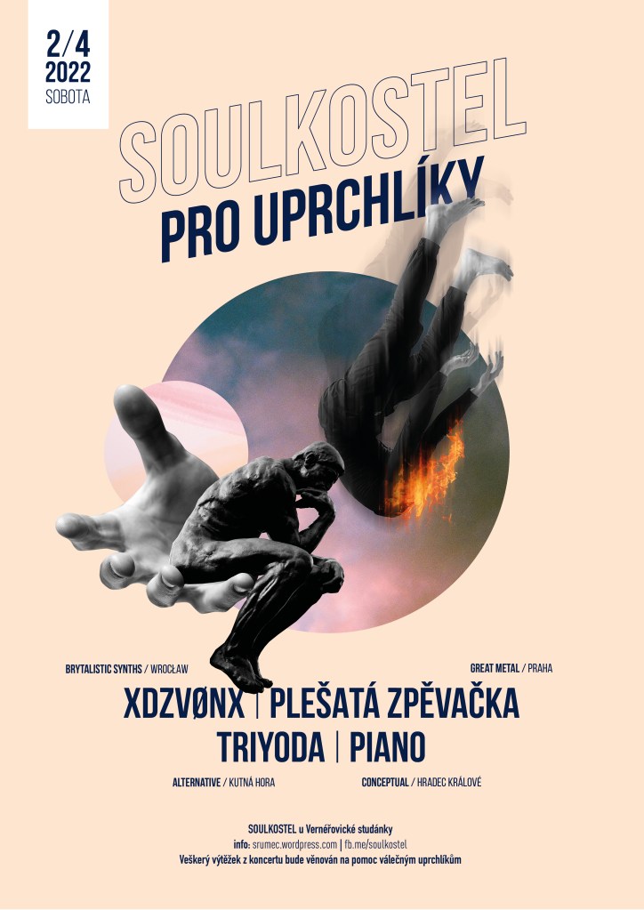 Ano, tenhle koncert neměl být. Přesto asi všichni chápeme, proč jsme se ho rozhodli udělat. Situace na Ukrajině je zoufalá a (nejen) do Česka proudí tisíce válečných uprchlíků. Naše pomoc bohužel bude potřeba ještě dlouho. Ano, po delší době vás zase budeme žádat o prachy, a budeme rádi, když jich donesete co nejvíc. My vám na oplátku zatopíme v Soulkostele (den dopředu, slibujeme), rozbalíme bar a společně zatleskáme kapelám, který se rozhodly tuhle věc podpořit. Děkujeme!