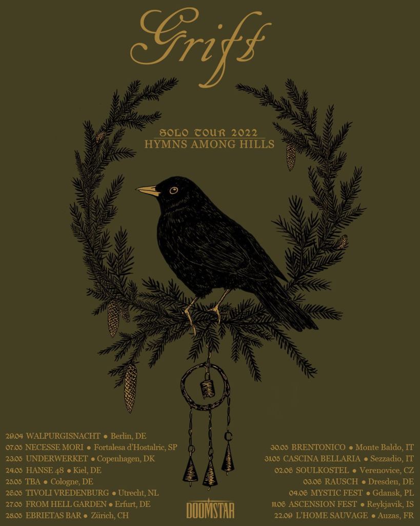 Jak říká jedno pěkný klišé, všechno hezký jednou končí. Ve čtvrtek 2. 6. 2022 od 20 hodin nás čeká komorní rozloučení s jarní koncertní sezónou v Soulkostele. Na jediné české zastávce evropského sólo tour Hymns Among Hills se u tu objeví Grift. Frontmanem téhle blackmetalové kapely je Erik Gärdefors, který vás přesvědčí, že stojí zato poslouchat jejich hudbu i v akustickém provedení. Přijďte si pro trochu melancholie.