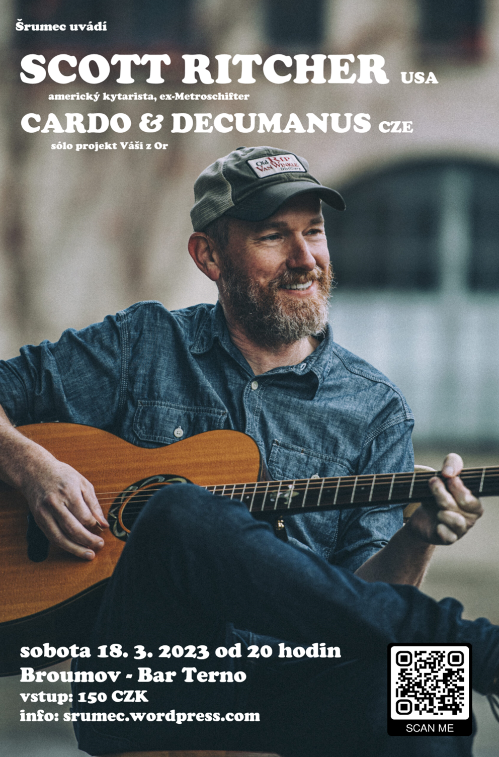 V sobotu 18. března 2023 zahraje v broumovským baru Terno americký písničkář Scott Ritcher. Společnost mu bude dělat Cardo & Decumanus, sólový projekt Váši z Or či Vlněny. Koncert začne ve 20 hodin.