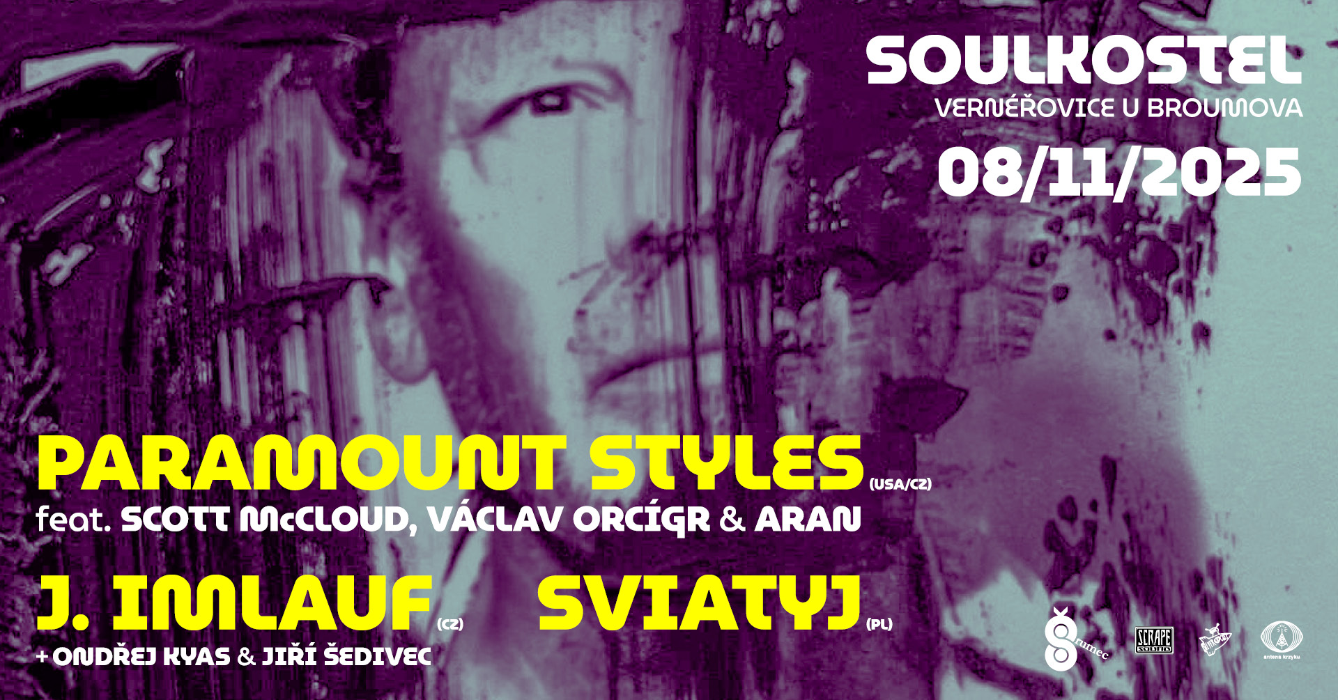Scott McCloud, frontman Paramount Styles, přijíždí do Česka nahrát živě koncertní program posledních let. Kromě čtvrteční Prahy chtěl zahrát ještě jeden koncert na speciálním místě a volba padla na náš Soulkostel. S trochu upraveným programem tady zahraje v triu s Aranem na basu a Vášou Orcígrem na violoncello. Můžeme se těšit na probírku největších hitů v této komornější sestavě a k tomu samozřejmě pár coverů zejména dischordovských kapel z 80. let. Yeah yeah yeah!